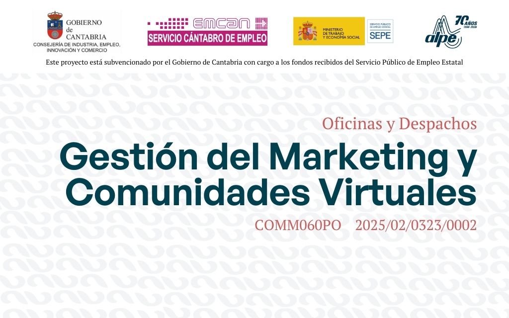 Centro de impartición: Alpe Formación. Pje. de Peña, 1, 39008 Santander, Cantabria